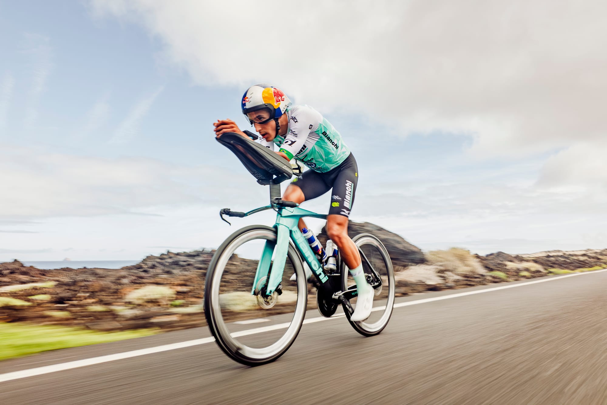 Para "pilotar" esta máquina, um dos triatletas profissionais escolhidos é o brasileiro Miguel Hidalgo, através da equipe que ele faz parte, a Bianchi Pro Triathlon Team.