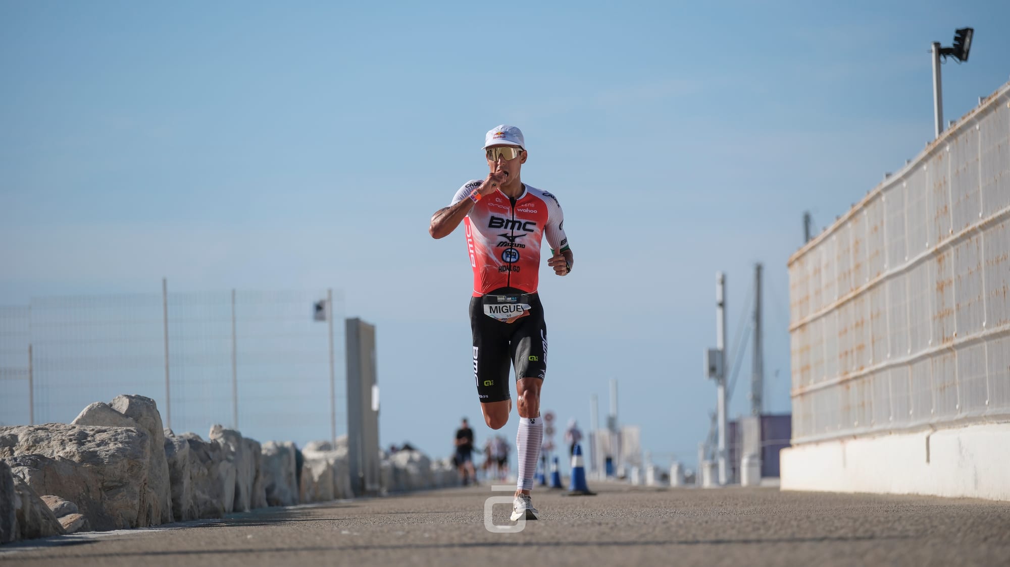 O ritmo se manteve forte, com as posições alternando na frente e fortes ataques nos metros finais, antes da T2. O principal grupo perseguidor veio cinco minutos após, onde também estava Miguel Hidalgo.